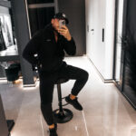 Zestaw świetnie wygląda z masywnymi sneakersami lub minimalistycznymi butami typu trainer.