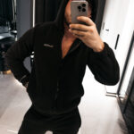 Górna część to bluza w klasycznym, lekko luźnym kroju, zapinana na zamek.