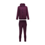 Dół kompletu to spodnie z regulowaną talią, co zwiększa komfort dopasowania.