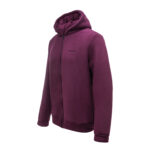 Na kapturze umieszczono efektowny, pionowy haft z logo, który buduje modowy akcent.