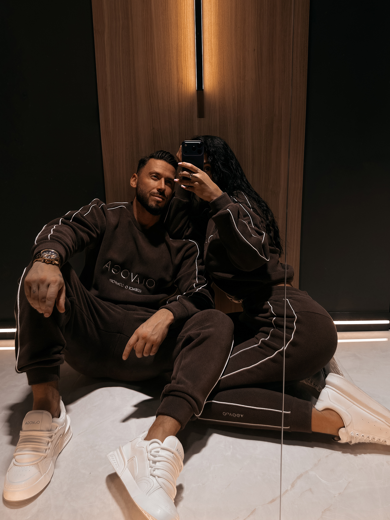 Dół kompletu tworzą spodnie z elastycznym pasem, które gwarantują wygodę oraz łatwe dopasowanie do sylwetki. Proste nogawki zakończone ściągaczami nadają całości sportowo-casualowego charakteru, jednocześnie zachowując estetyczną linię. Boczne kieszenie zwiększają funkcjonalność, a subtelny haft z logo OLAVOGA na nogawce podkreśla spójność stylistyczną zestawu.