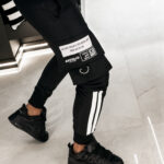 Elastyczna guma w pasie oraz regulacja za pomocą sznurka umożliwiają idealne dopasowanie do sylwetki. Nogawki wykończone ściągaczami z dekoracyjnymi wstawkami po bokach podkreślają dynamiczny charakter modelu i nadają mu nowoczesnej lekkości. To spodnie, które doskonale komponują się z bluzami, kurtkami oraz sneakersami premium.