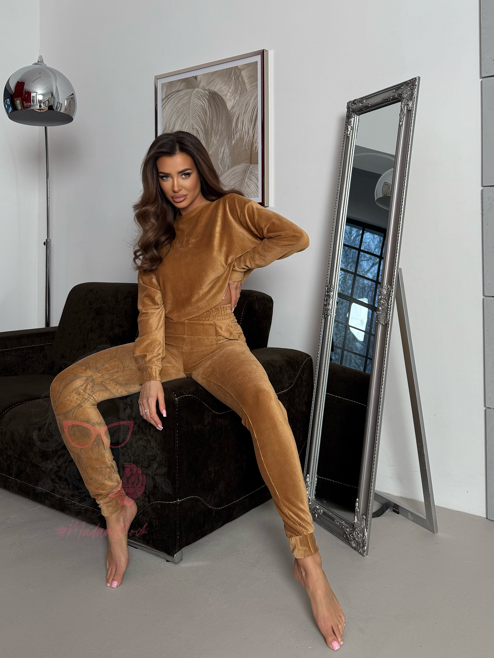 Komplet prążkowany welurowy Lamanuel Saliz karmelowy