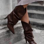Kozaki na szpilce ekoskóra Madam Monecco czekoladowe