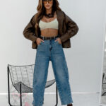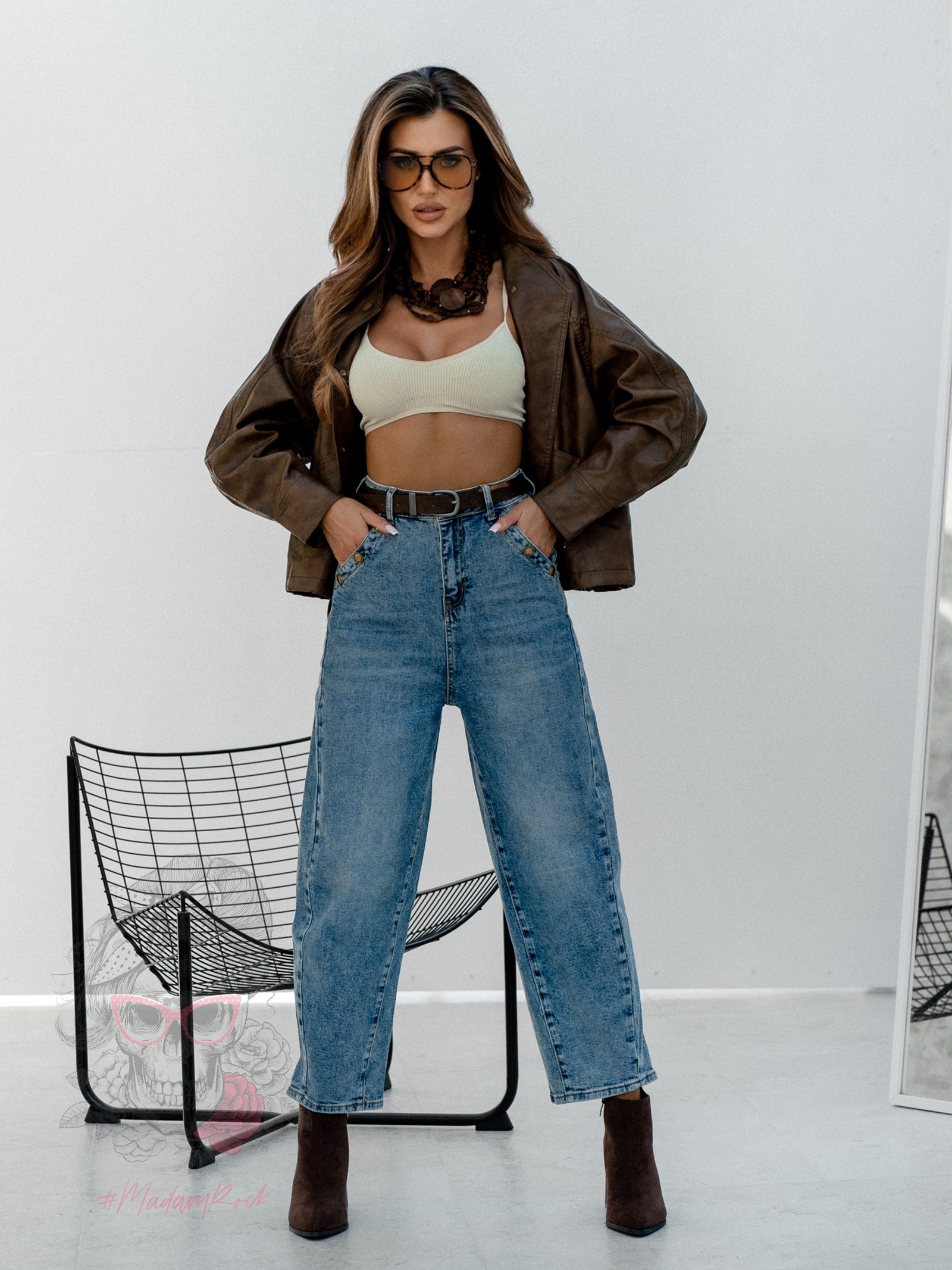 Spodnie posiadają kieszenie z przodu i z tyłu, a przednie ozdobione są eleganckimi złotymi napami, które nadają stylizacji szyku. W zestawie znajduje się brązowy pasek z ekoskóry ze złotą klamrą, który podkreśla talię i dopełnia całość. Idealne do casualowych stylizacji z T-shirtami, bluzami lub koszulami. BOSTES to must-have dla fanek modnych i funkcjonalnych jeansów.