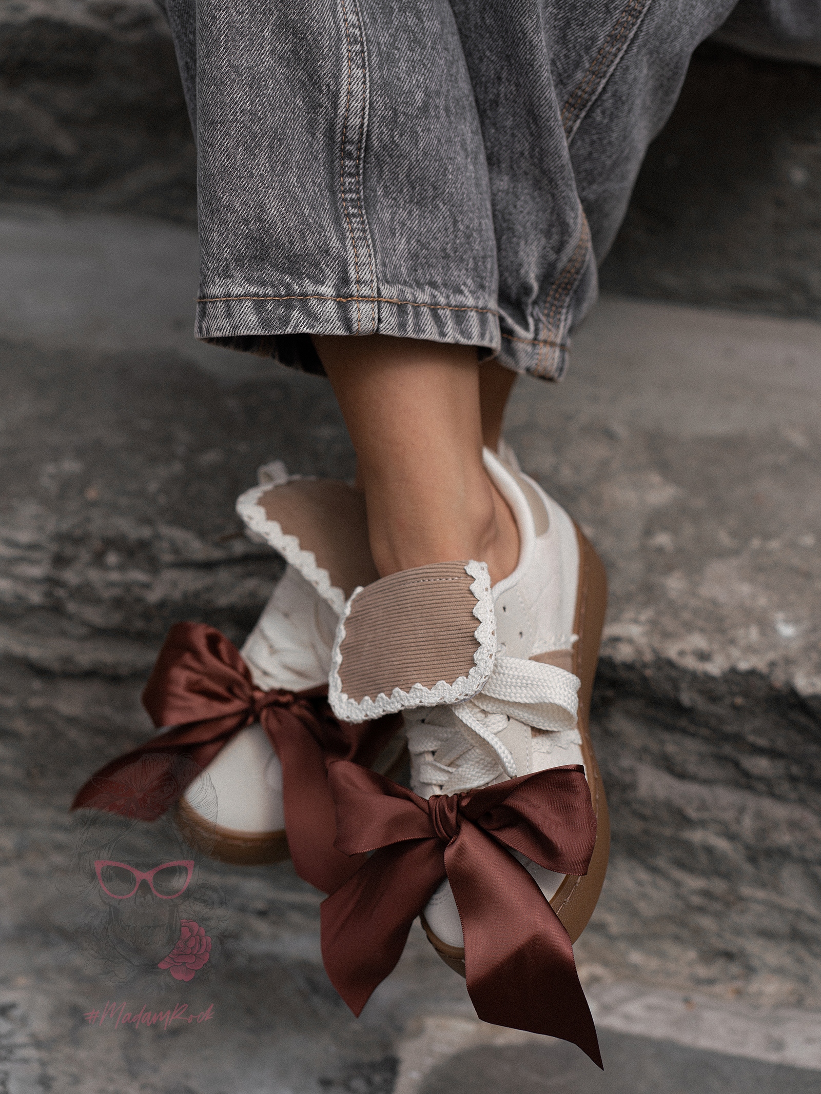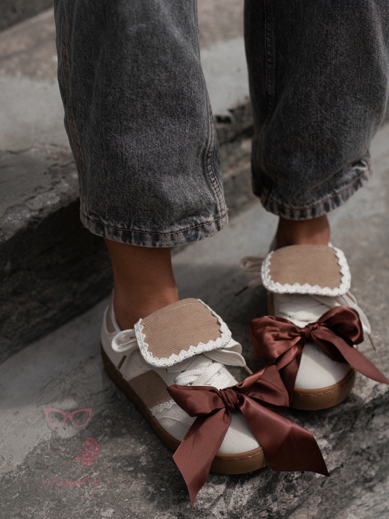 Trampki Bellas to połączenie dziewczęcego uroku i wygodnego stylu casual. Ich wyjątkowy design przyciąga uwagę dzięki starannie dobranym detalom — ozdobnym tasiemkom, delikatnej koronce i szerokim wstążkom, które zastępują klasyczne sznurowadła. Cholewka została zaprojektowana z dbałością o estetykę, a miękka, elastyczna podeszwa zapewnia komfort noszenia na co dzień. Model świetnie sprawdzi się jako uzupełnienie lekkich, codziennych stylizacji, dodając im niepowtarzalnego charakteru. To idealny wybór dla osób, które szukają obuwia łączącego wygodę z subtelną, dekoracyjną formą.