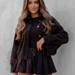 Kurtka sztruksowa Tomer w odcieniu czekolady to stylowe połączenie koszuli i lekkiej kurtki, które sprawdzi się w wielu codziennych stylizacjach. Krótki fason z wszytą gumką u dołu pozwala na idealne dopasowanie do sylwetki, a metalowe guziki dodają całości charakteru. Model posiada praktyczne kieszenie z klapami z przodu oraz rękawy 3/4 z możliwością zawinięcia, co nadaje mu swobodnego, casualowego stylu.
