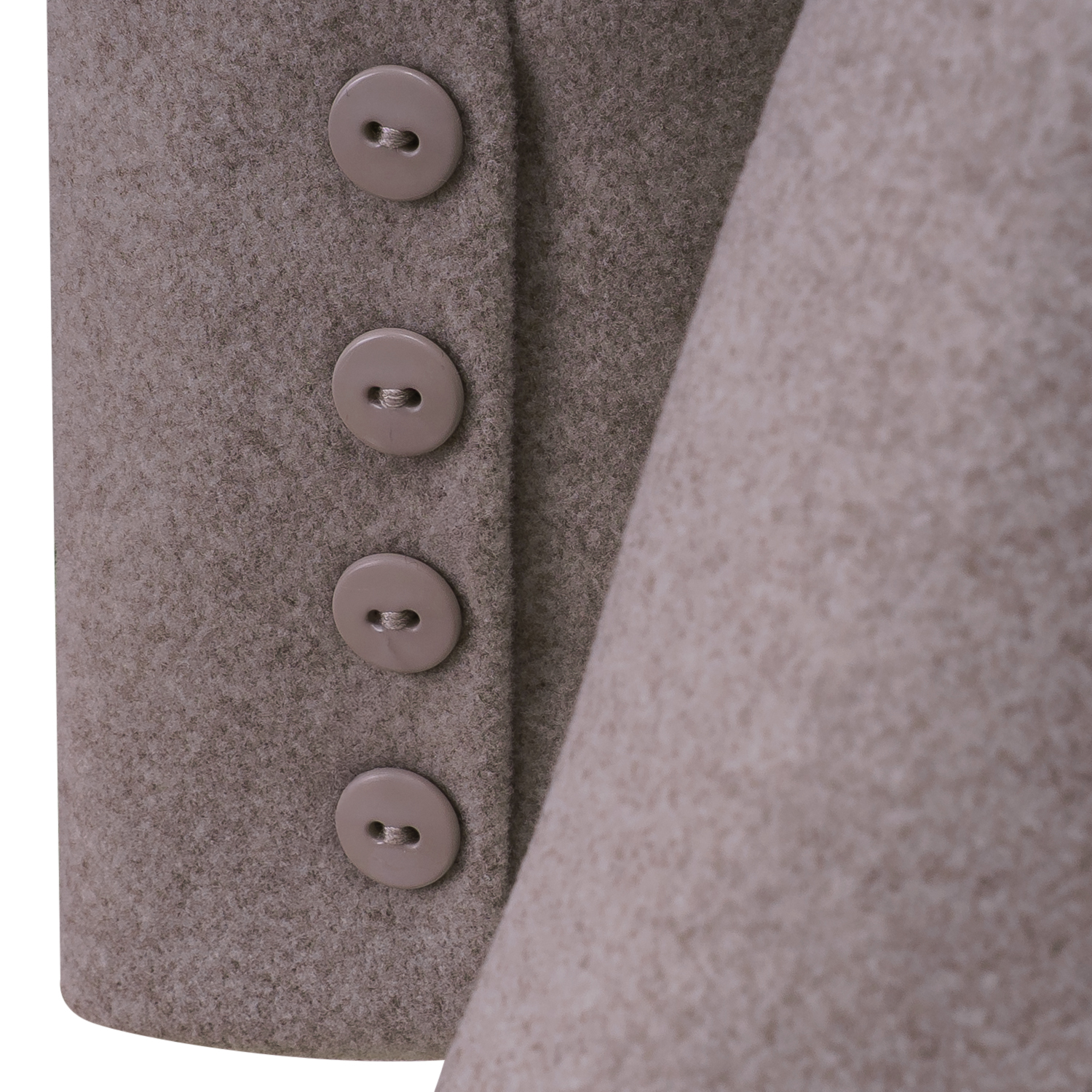 Model HUSH posiada dwurzędowe zapięcie na guziki, które nadaje całości klasy.