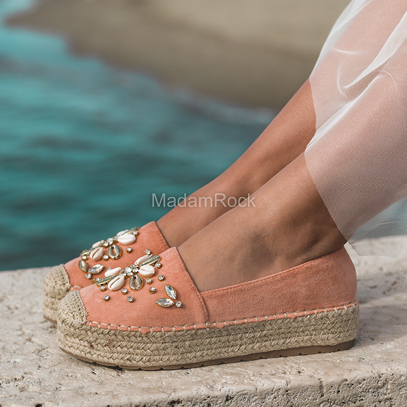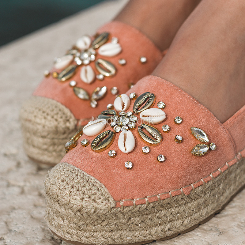 Wykonane z delikatnego zamszu ekologicznego w kolorze morelowym.