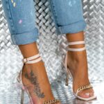 Niezwykle efektowne sandały damskie Madam Guided. Wykonane z lakierowanej skóry ekologicznej w czarnym nudę. Na gumowej, antypoślizgowej podeszwie i wysokiej, złotej szpilce, która optycznie wysmukli Twoją sylwetkę. Model z bardzo modnym, kwadratowym noskiem i transparentnym paskiem ze złotym łańcuszkiem, który trzyma stopę. Sandały zapinane są na dłuższy, regulowany pasek, który opłata kostkę.