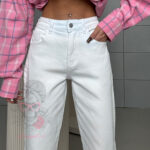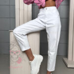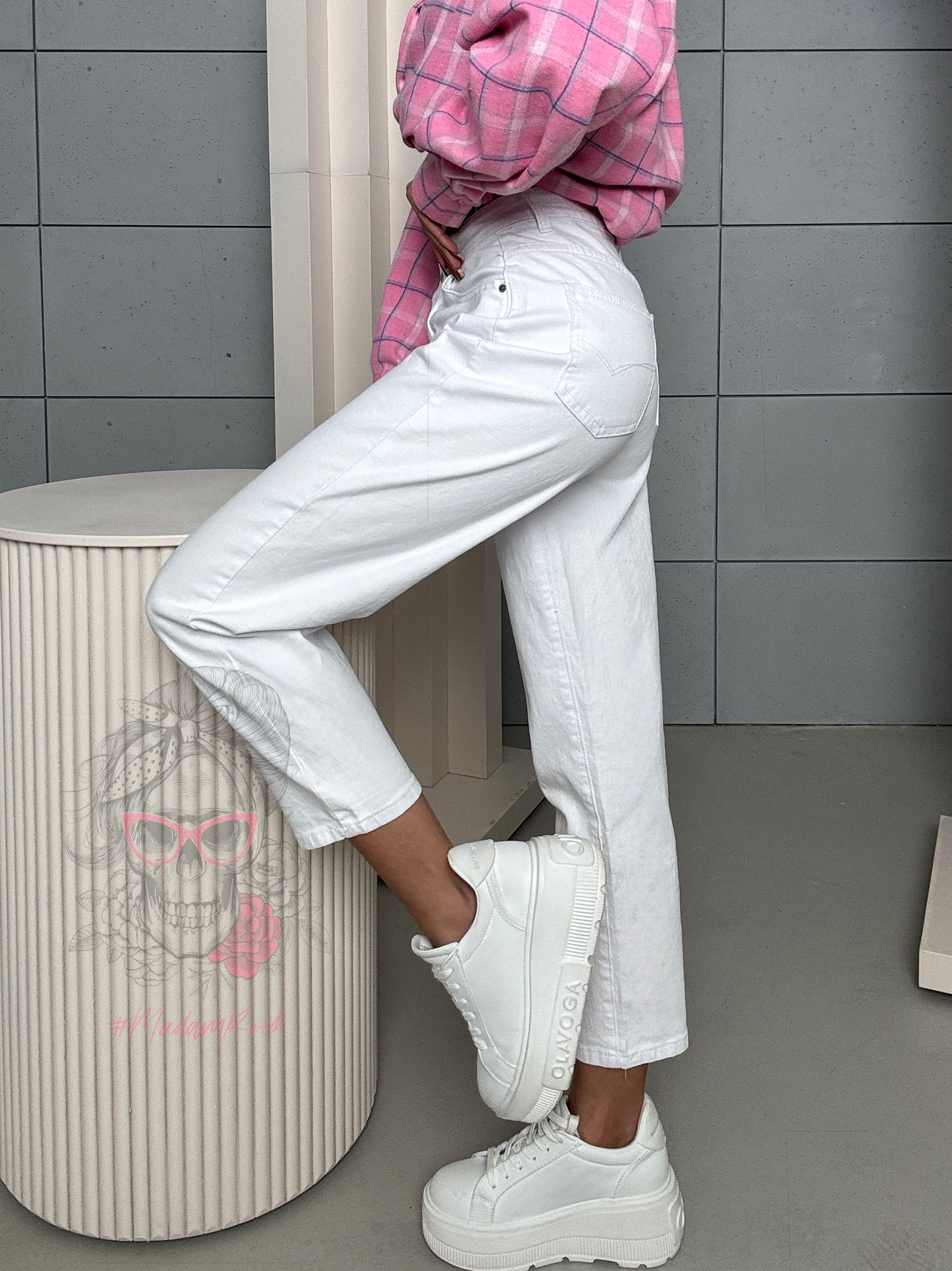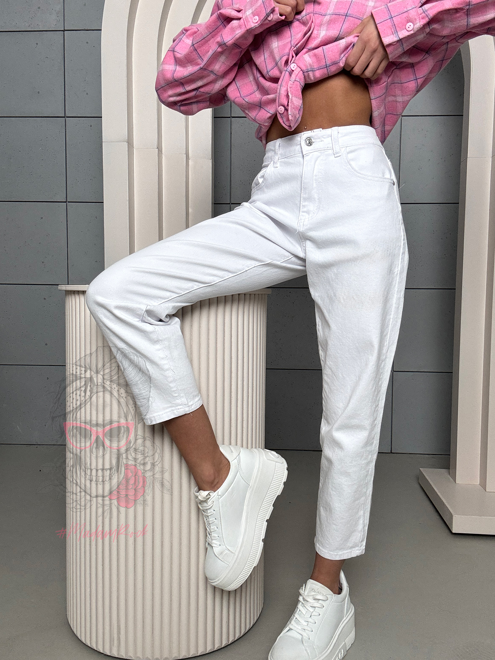 Spodnie Aluvia w kolorze białym to klasyczne jeansy w fasonie mom fit, który od lat cieszy się niesłabnącą popularnością. Wysoki stan pięknie podkreśla talię, optycznie wydłuża nogi i zapewnia wygodę noszenia, jednocześnie nadając sylwetce proporcjonalny, kobiecy wygląd. To krój, który sprawdzi się niezależnie od pory roku i aktualnych trendów.