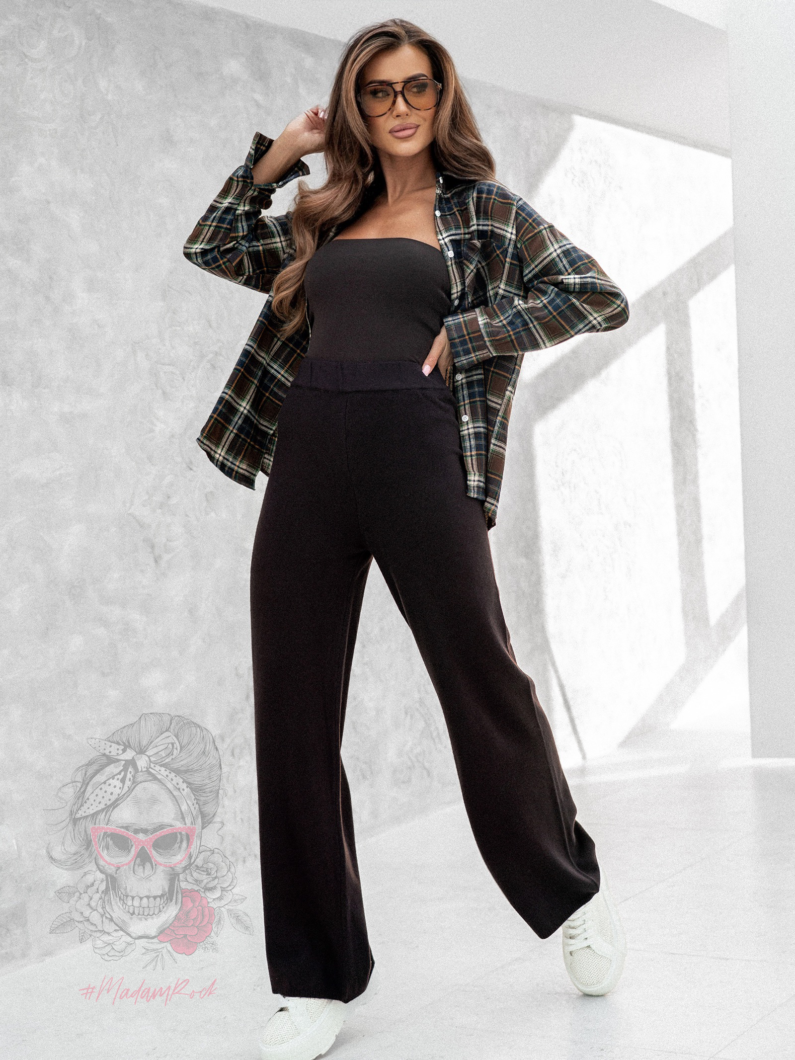 Dzianinowe spodnie Moszer zostały zaprojektowane z myślą o maksymalnym komforcie. Elastyczna talia idealnie dopasowuje się do sylwetki, a lekko dopasowany fason delikatnie modeluje linię nóg. Klasyczny krój pozwala na łatwe łączenie ich z różnymi elementami garderoby, jednak w duecie ze swetrem tworzą spójną, stylową całość, która nie wymaga dodatkowych zabiegów stylizacyjnych.