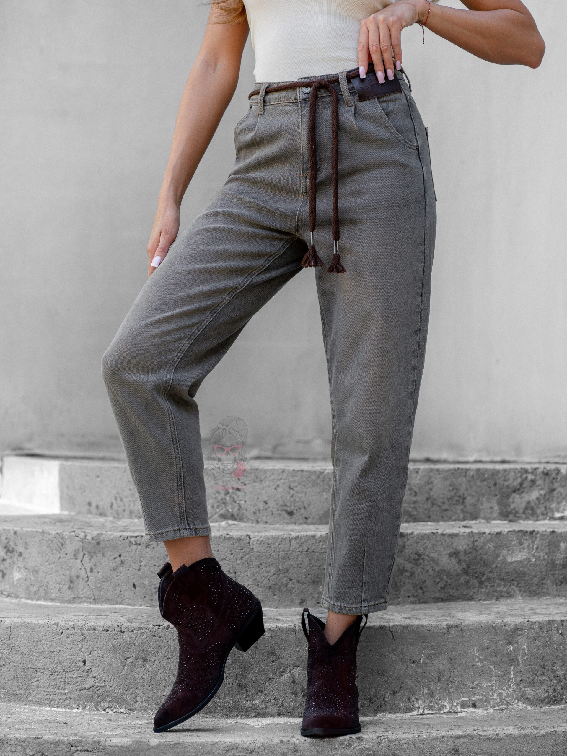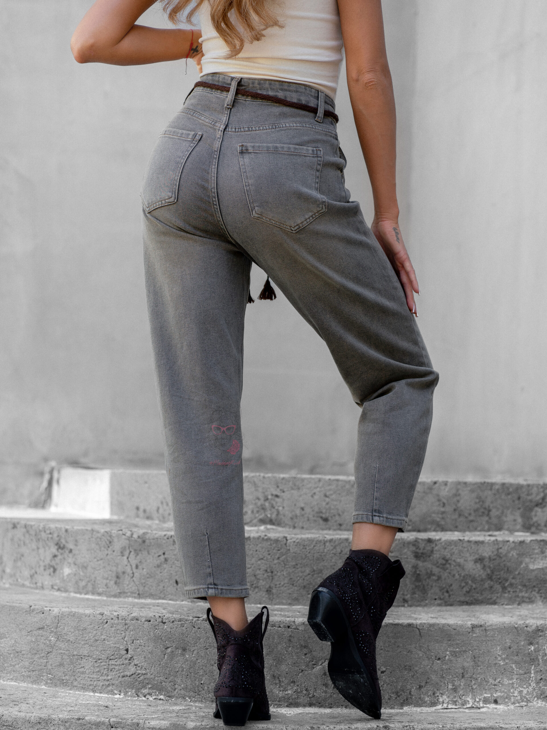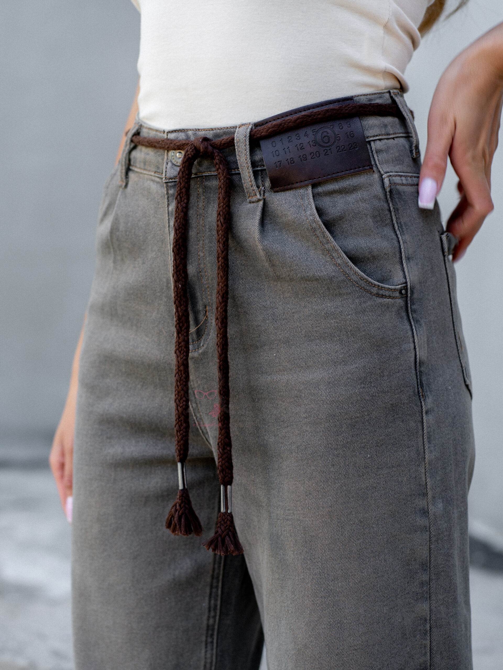 Spodnie jeansowe baggy Brioge w kolorze khaki to połączenie wygody i modnego stylu streetwear. Wykonane z elastycznego denimu, zapewniają komfort noszenia na co dzień. Dzięki efektowi sprania i dekatyzacji spodnie zyskują niepowtarzalny, vintage’owy charakter. Model o fasonie boyfriend posiada praktyczne kieszenie z przodu i z tyłu, a także gumkę w pasie z możliwością regulacji za pomocą grubej, brązowej sznurówki. Zapinane na guzik i suwak. Idealne do casualowych stylizacji – świetnie wyglądają zarówno z oversize’ową bluzą, jak i klasycznym T-shirtem.