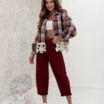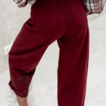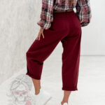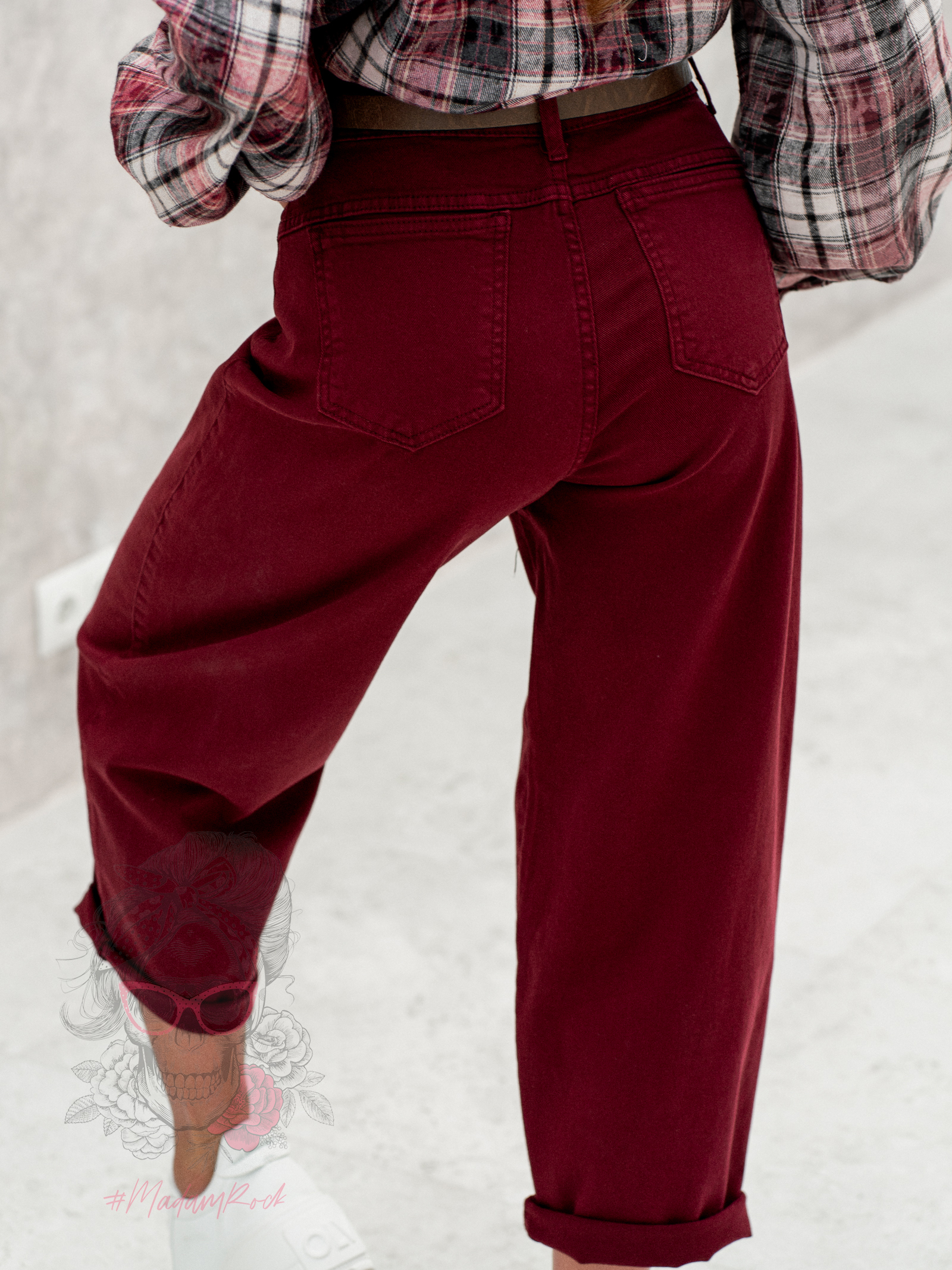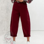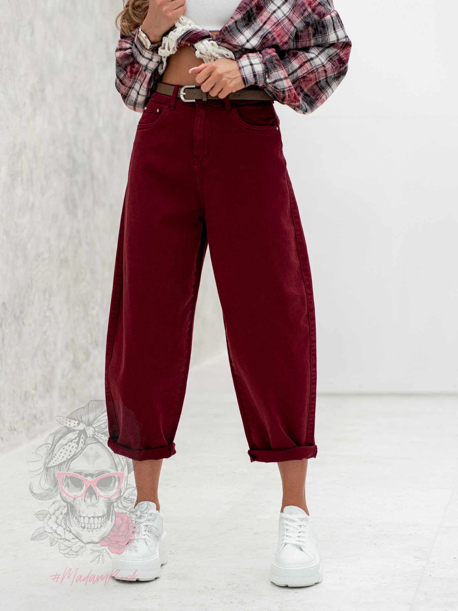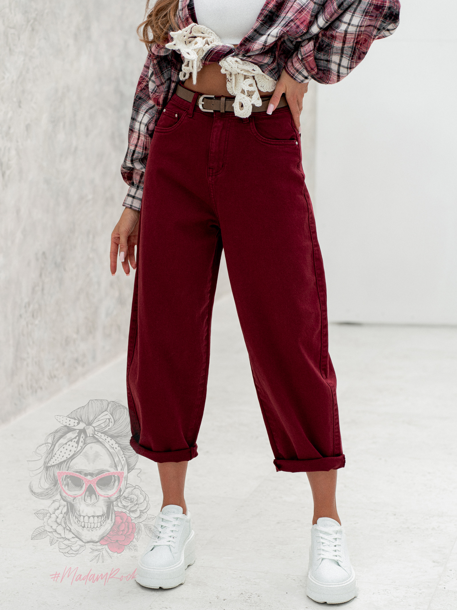 Nowoczesne spodnie jeansowe Ileno o fasonie Wide Balloon, wykonane z elastycznego materiału, który zapewnia wygodę i swobodę ruchów. Model w głębokim bordowym kolorze, zapinany na guzik i suwak, z klasycznymi kieszeniami z przodu oraz z tyłu. W zestawie znajduje się pasek z ekoskóry w brązowym odcieniu z elegancką srebrną klamrą, który stanowi idealne dopełnienie całości. Stylowe i komfortowe – świetny wybór zarówno na co dzień, jak i do bardziej wyrazistych stylizacji.