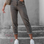 Model Loew wyróżnia się krojem, który subtelnie podkreśla sylwetkę i zapewnia wygodę noszenia. Elastyczny pas i praktyczne kieszenie czynią spodnie funkcjonalnym elementem garderoby. W zależności od okazji możesz zestawić je z eleganckim obuwiem damskim – szpilkami czy botkami – albo postawić na sportowe sneakersy. Dodając modną torebkę, stworzysz kompletną stylizację w stylu smart casual.