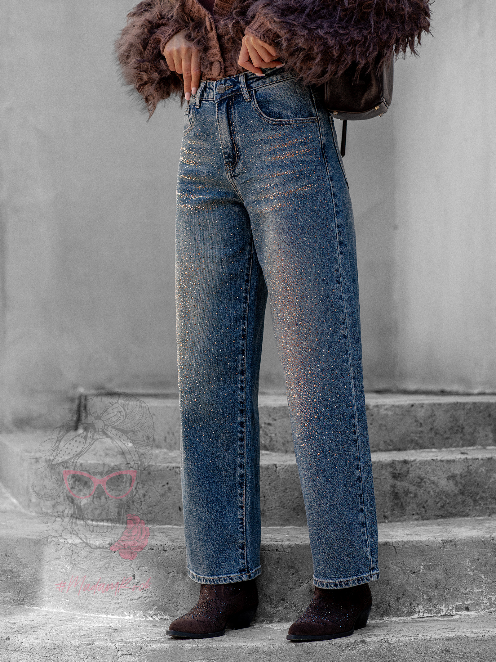 Spodnie jeansowe z cyrkoniami Aulo granatowe