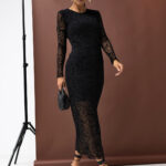 Model posiada dopasowaną podszewkę sięgającą do połowy uda, która zapewnia wygodę i dyskrecję. Przezroczysty dół z siateczki delikatnie odsłania nogi, nadając całości subtelnego charakteru. Rozcięcie po boku optycznie wydłuża sylwetkę i dodaje seksapilu, a taliowany krój pięknie podkreśla kobiece proporcje. Materiał jest miękki i elastyczny, dzięki czemu sukienka gwarantuje pełen komfort noszenia przez cały wieczór.