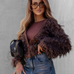Sweter z frędzlami Marsho V to wyjątkowy model, który przyciąga uwagę oryginalnym designem. Krótszy fason typu mop nadaje sylwetce lekkości, a całość została ozdobiona miękkimi, efektownymi frędzlami, które dodają mu modnego charakteru. Sweter zapinany jest z przodu na guzik i posiada zabudowany dekolt, co czyni go idealnym wyborem na chłodniejsze dni.