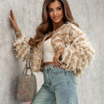 Sweter damski dwukolorowy oversize z frędzlami mop Gogis to połączenie nowoczesnego stylu i wygody. Wyróżnia się pudełkowym krojem o lekko oversize’owym charakterze, który nadaje sylwetce swobodny i modny wygląd. Kontrastowe kolory sprawiają, że sweter przyciąga uwagę i podkreśla indywidualny styl, a frędzle zdobiące całość dodają mu niepowtarzalnego charakteru inspirowanego trendem boho. Zabudowany dekolt sprawia, że model doskonale sprawdzi się w chłodniejsze dni, zapewniając komfort i ciepło. Ten kontrastowy sweter damski świetnie komponuje się zarówno z jeansami, jak i ze spódnicą czy eleganckimi spodniami, dzięki czemu jest idealnym wyborem na co dzień, do pracy czy na spotkanie ze znajomymi. To propozycja dla kobiet, które poszukują w swojej garderobie wyjątkowych i stylowych ubrań, łączących modny design z wygodą noszenia.